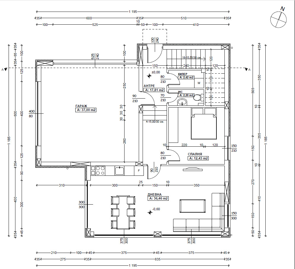 - двоен гараж с площ 37.00 кв.м. с топла връзка към къщата