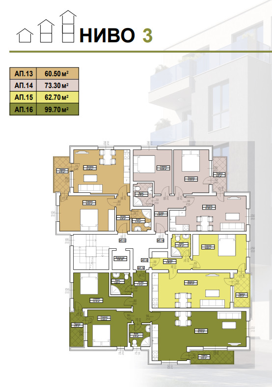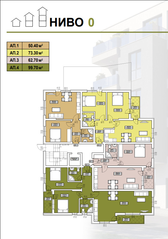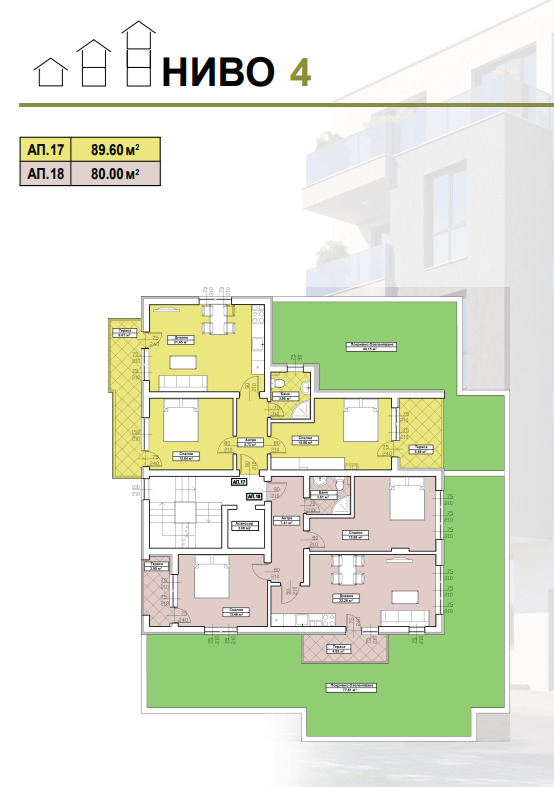 ✅тристайни апартаменти с покривно озеленяване с площ от 138,64 м2 до 166,06 м2 на цени от 117 844 евро до 141 151 евро с ДДС;
