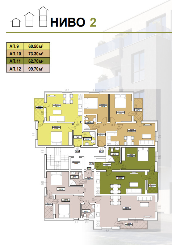 ✅двустайни апартаменти с площ от 66,79 м2 до 69,48 м2 на цени от 56 772 евро до 59 058 евро с ДДС;