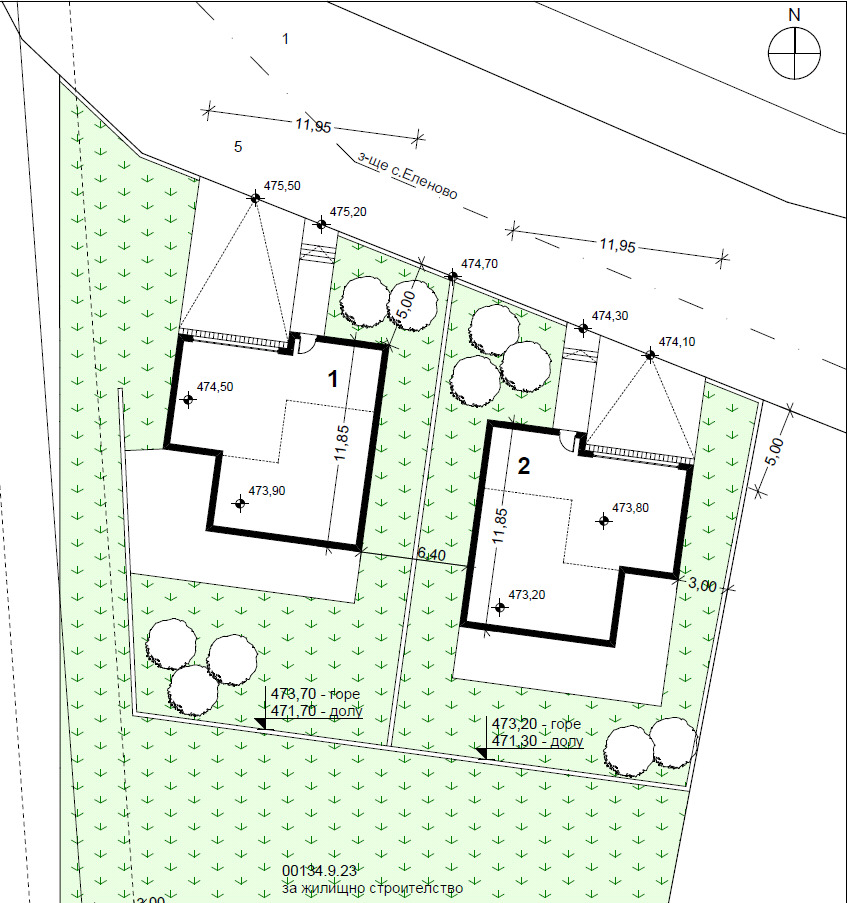 Разпределение на КОТА =/- 0,00 М със ЗП 126.60 кв.м.: