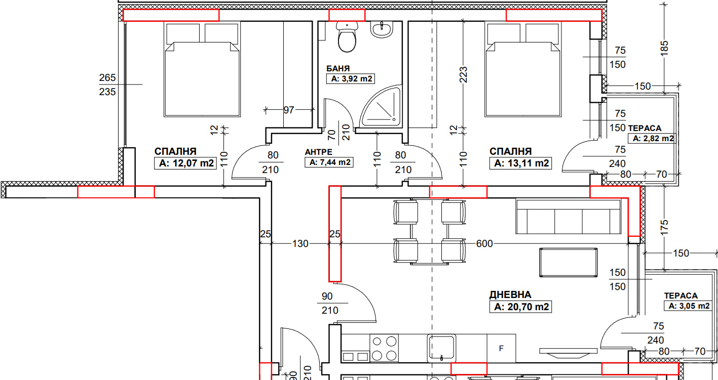 - входно антре с площ 7,44 кв.м.