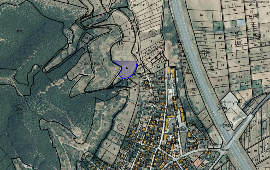 Парцела е с денивелация и се намира на много тихо и спокойно място с панорамна гледка към града!