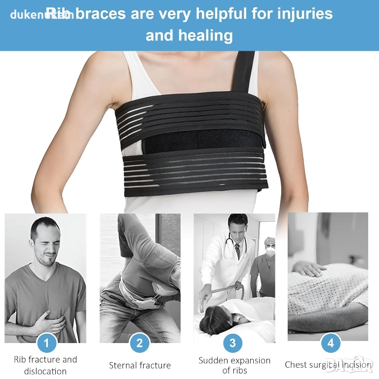 Подходящ при травми – за пукнати, счупени или натъртени ребра, както и при болка в гръдната област