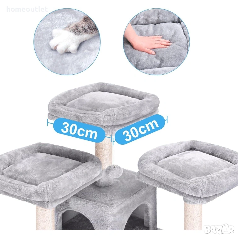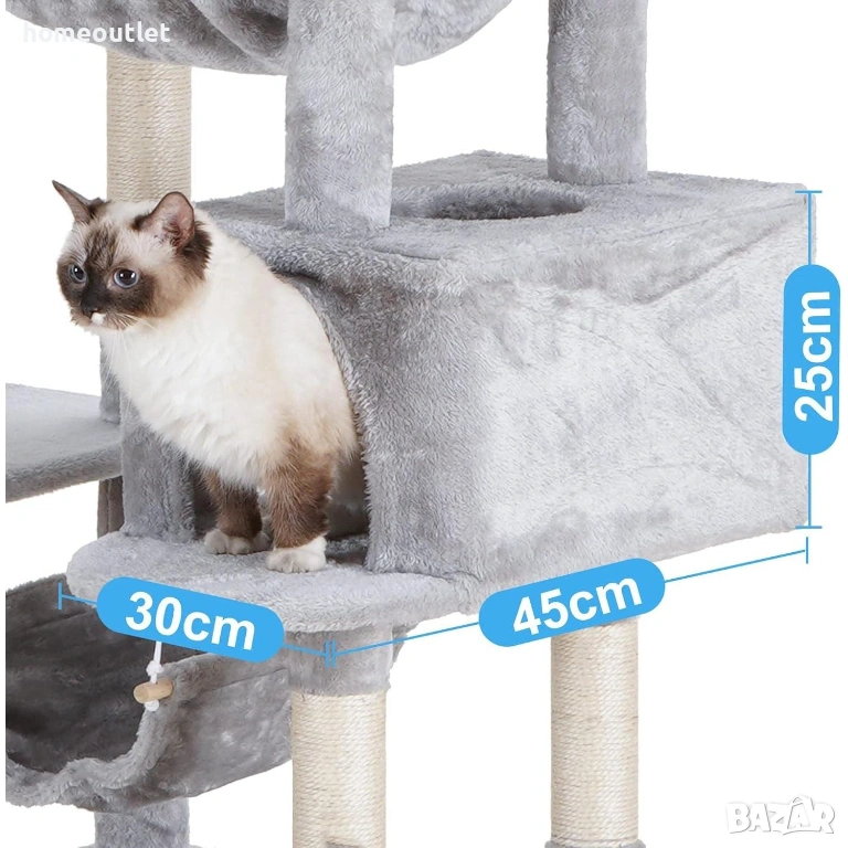 Благодарение на висококачествената инженерна дървесина, здравите стълбове и подсилената основна плоча, дървото за котки гарантира безопасното катерене на вашите активни домашни любимци.