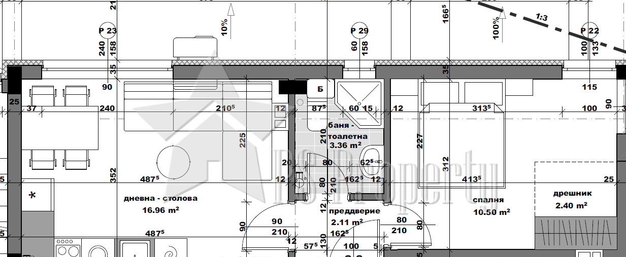 Характеристики: Имота се състои от входно антре, всекидневна с кухненски кът, спалня, баня с тоалетна. Имота е изключително подходящ за инвестиция!!!