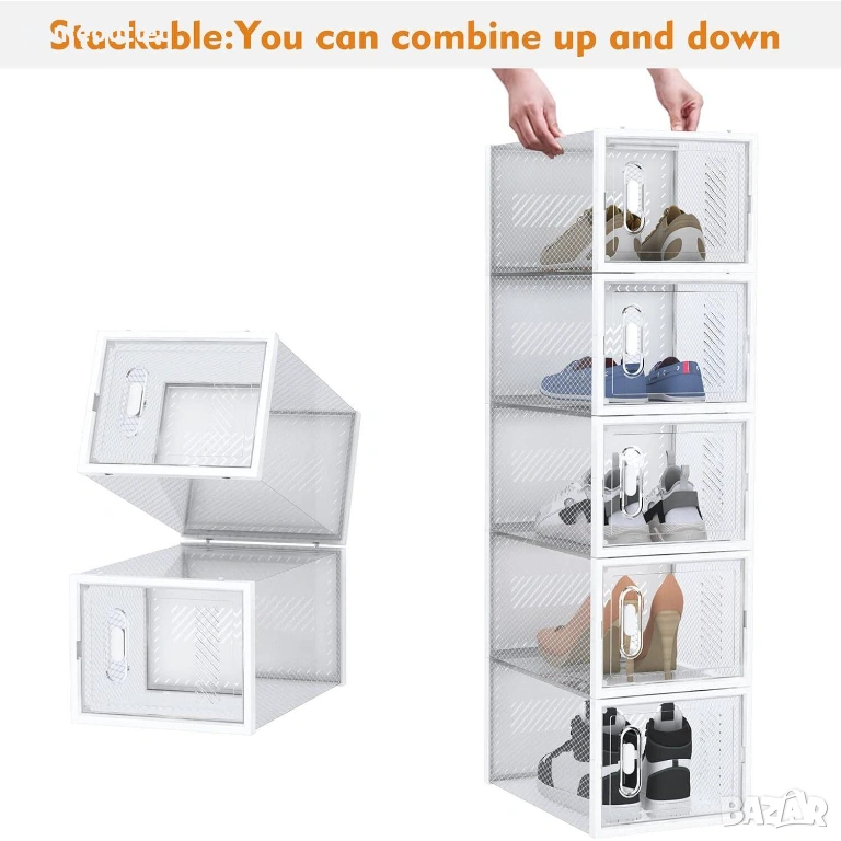 Ако имате проблем с разхвърляни обувки, тази пластмасова сгъваема и подреждаща се конструкция е идеалното решение.