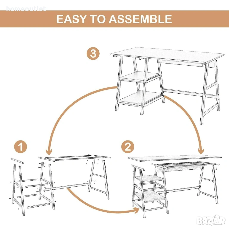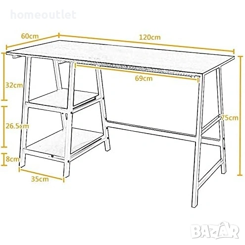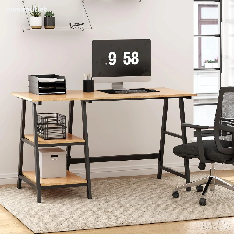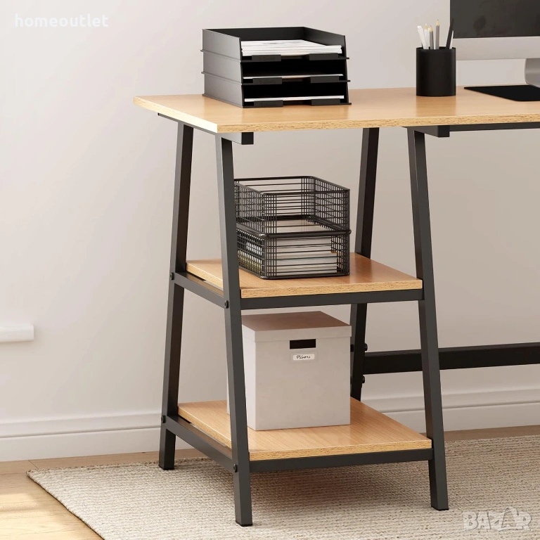 Вградените 2 рафта осигуряват достатъчно място за книги, лаптоп, таблет, офис консумативи, документи и др. като освобождават работната повърхност.