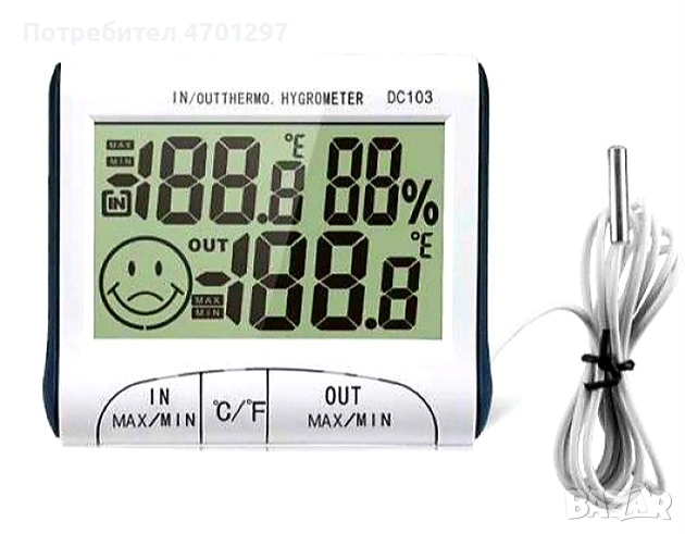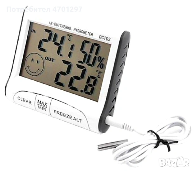 Дигитален термометър и влагомер със сонда за вътрешна и външна температура → Обява 53085668