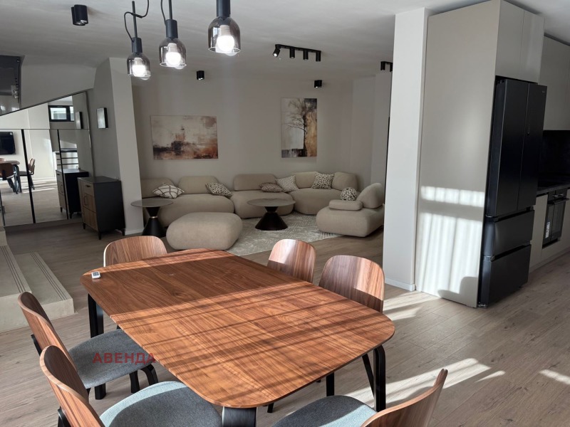 С ВКЛЮЧЕНО ПАРКО МЯСТО В ЦЕНАТА! Агенция за недвижими имоти АВЕНДА има удоволствието да ви представи чисто нов тристаен апартамент под наем в квартал Витоша на изключително комуникативно място срещу посолствата на бул. Симеоновско шосе, в непосредствена близост до Кауфланд и Фантастико. Апартаментът е на две нива и има следното разпределение: ниво 1 - просторна дневна, трапезария, кухненски кът, ниво 2 - две спални, като втората спалня ще бъде обзаведена според предпочитанията на бъдещите наематели, баня с тоалетна, отделна тоалетна. Жилището е обзаведено по дизайнерски проект с висококачествени мебели и електроуреди от последно поколение. Интериорът е решен в съвременен стил, с внимание към детайла, създаващ усещане за комфорт и елегантност. Изложението е Изток и Юг. Отоплението е на електричество, посредством климатици. Локацията е с удобен достъп до градски транспорт, мол Парадайс, бърза връзка с Околовръстен път, бул. Черни връх и централната част на града.