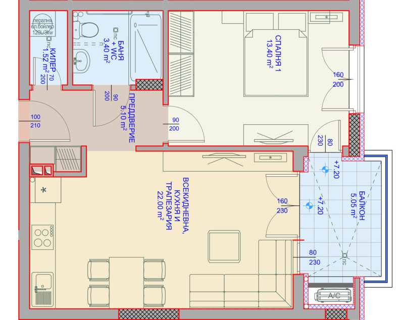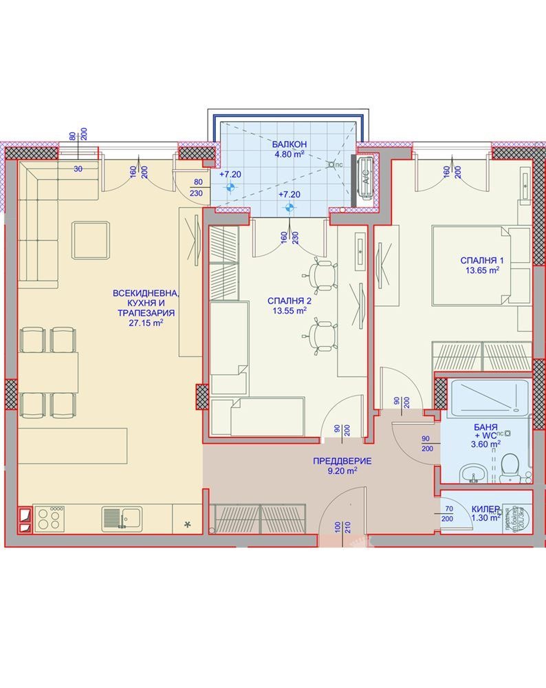 ✔28 двустайни и 21 тристайни апартамента с площ от 67,42 до 186,41 кв.м.