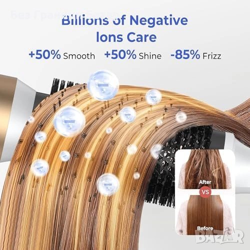 Технология с отрицателни йони за по-гладка, блестяща и по-малко наелектризирана коса