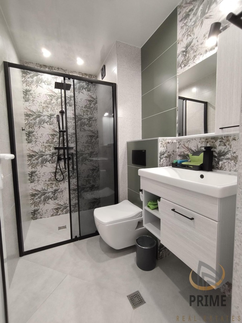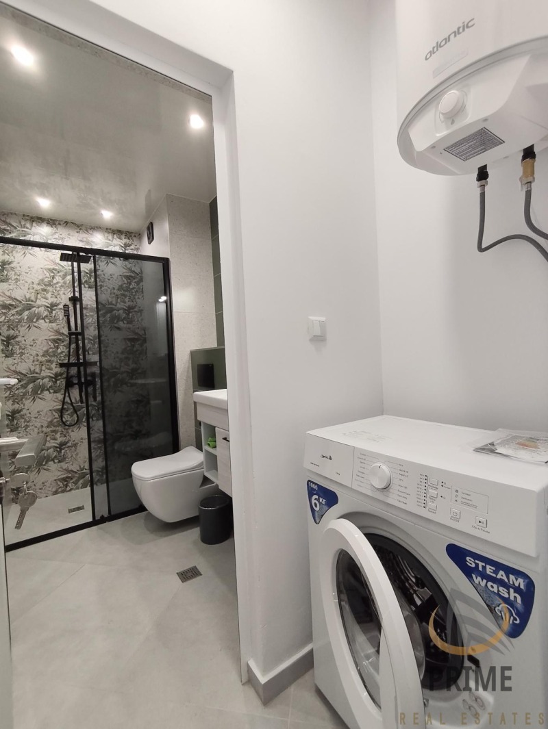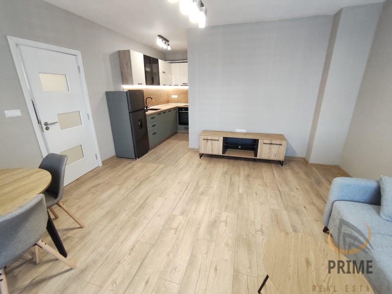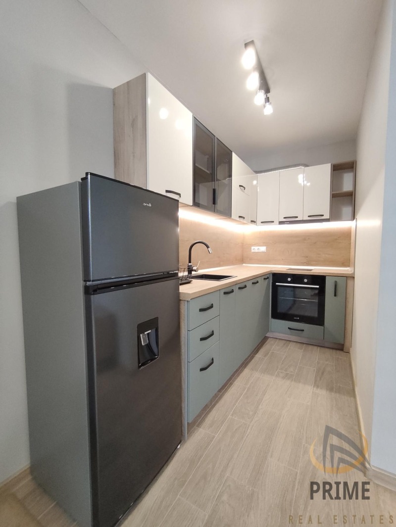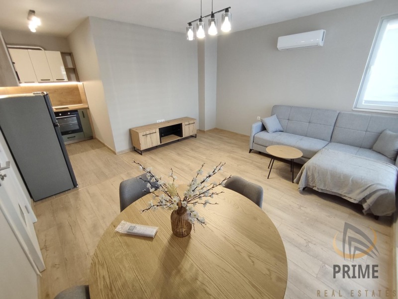 В нова сграда с Акт 16 и с асансьор. Стилно обзаведен с всички необходими мебели и нови ел. уреди в гаранция. Състои се от входно антре с ниша за пералнята, хол с кухня и трапезария, спалня, баня с тоалетна и тераса.