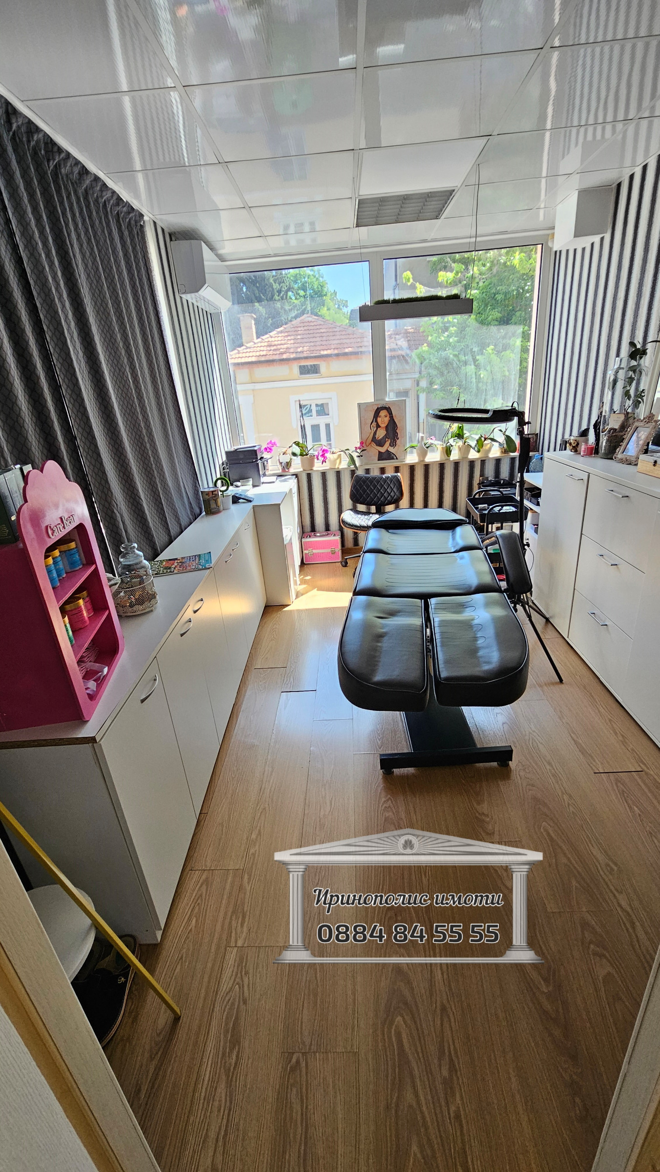 Помещението в момента се ползва за салон за красота, напълно обзаведено и в отлично състояние като има следното разпределение: