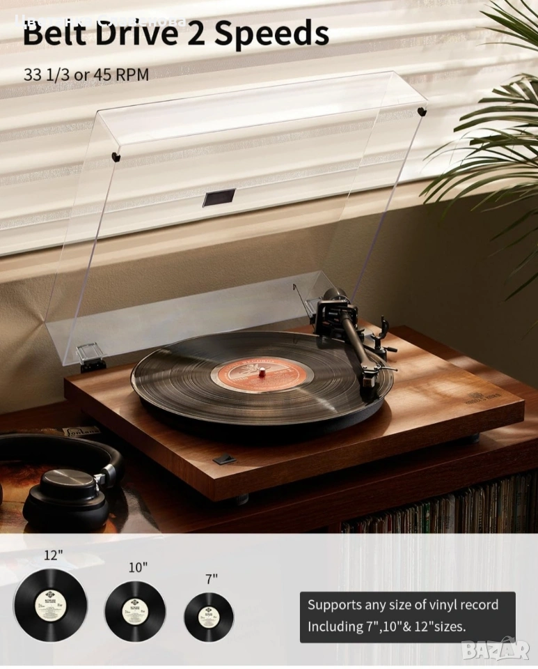 【Регулируема двускоростна】Система за ремъчно задвижване и DC серво мотор могат да накарат грамофона да се върти с 33 1/3 или 45 оборота в минута. Скоростта на въртене може да се избере според скоростта на виниловата плоча, така че грамофонът да може перфектно да интерпретира виниловата плоча за вашия висококачествен музикален живот.