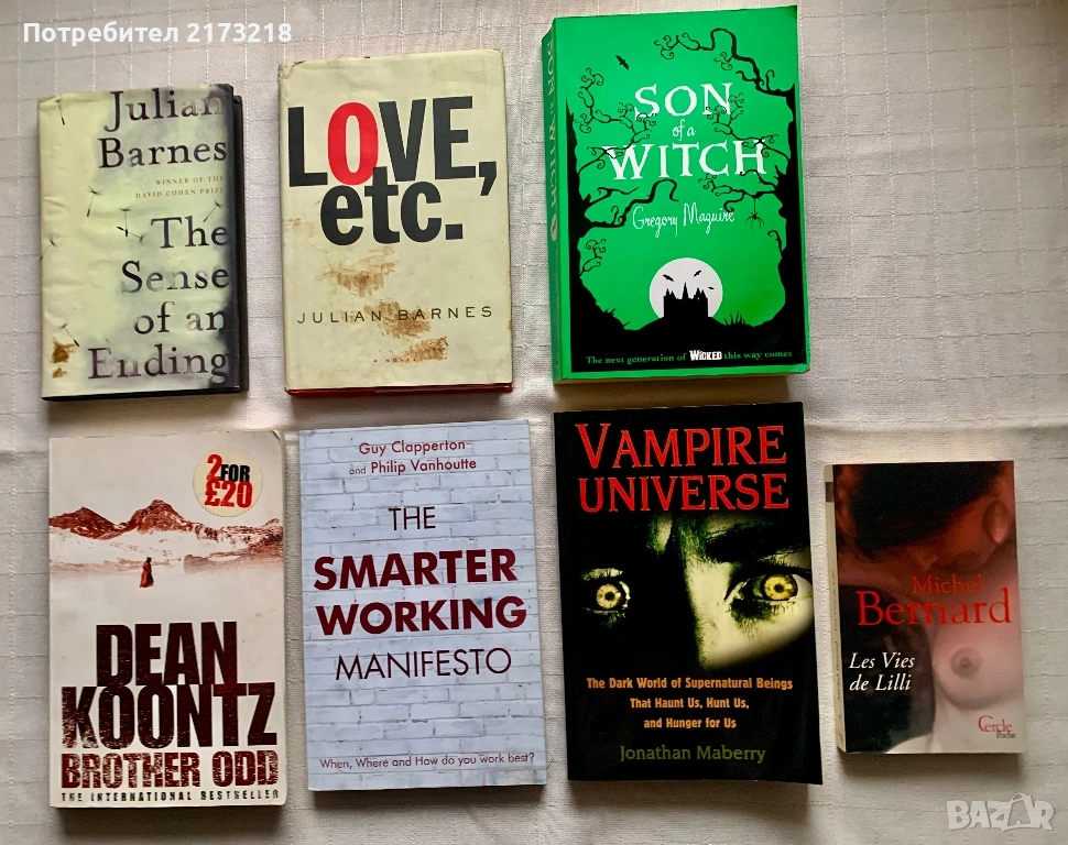 книги на английски език, + 1 на френски. Някои са нови, други са прочетени. 5 Е - за 1 брой.