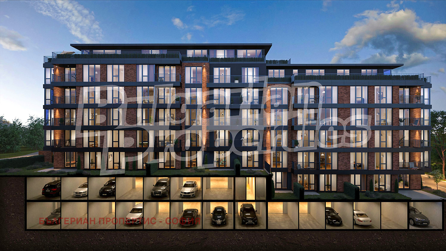 Сградата се изпълнява съгласно архитектурния проект при I-во качество на строителство монолитно. Екстериорът на сградата е комбинация от материали - фасадна облицовка от клинкер, ламарина с полиестерно покритие; топлоизолационна система Baumit с топлоизолация 100мм EPS с обемно тегло 15-18кг/м3; минерална мазилка Baumit NanoporTop - самопочистваща се, с ниска склонност към замърсяване и силно паропропусклива; петкамерна PVC дограма VEКA Germany (или сходна) с трислоен стъклопакет; плосък покрив с топлоизолация XPS 150 мм, пароизолация и два пласта битумна хидроизолация от General membrane (Италия). Разполага с електрически асансьор ORONA 3G 1010 Испания, модел MRL без машинно помещение, предназначени за 6-8 лица и с товароносимост 450-630 кг, със спирки на всеки етаж, включително сутерен.