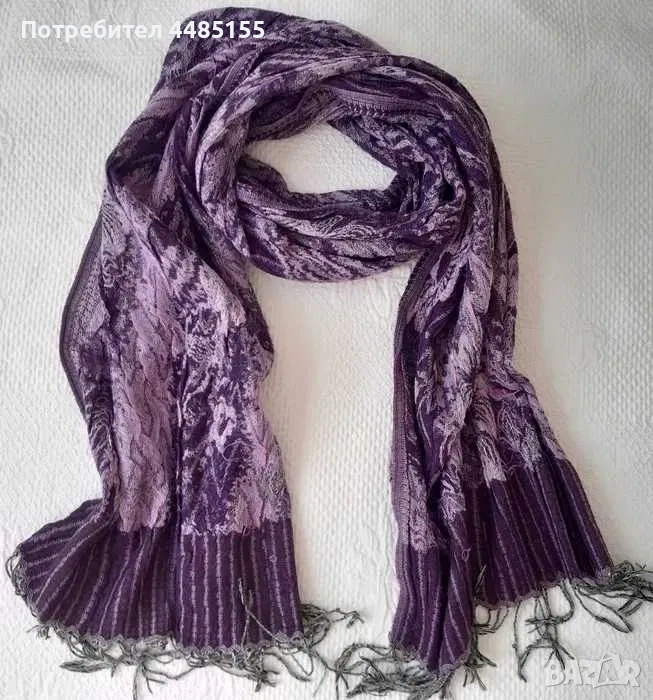 Лилав, правоъгълен, релефен, мек и нежен шал. В добро състояние.