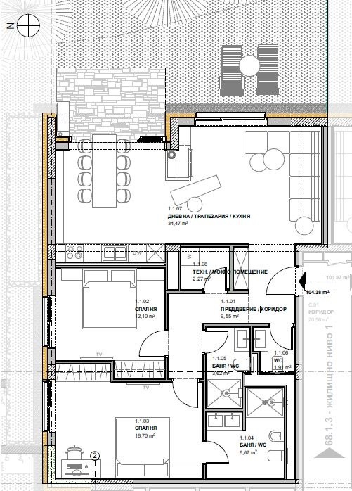 - Застроена площ 104,40 кв.м.