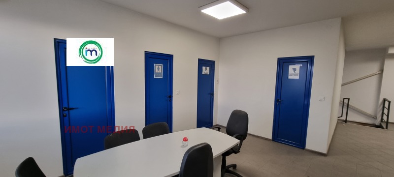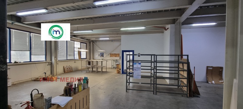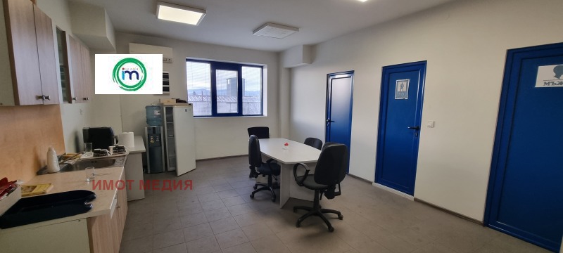 Агенция за недвижими имоти 'Имот Медия' предлага под наем самостоятелна сграда с парцел не посредствена близост до главена пътна артерия и лесен достъп до АМ 'Тракия' което благоприятства за развитие на всеки бизнес с вътрешни и международни пазари. Имота се състои от: парцел с площ 735 кв.м., сграда с застроена площ от 390 кв.м. на два етажа - първи етаж : производство или складова база. втори етаж административен със три офиса, три съблекални и санитарни възли и кът за отдих на персонала. Обявената наемна цена е без ДДС.