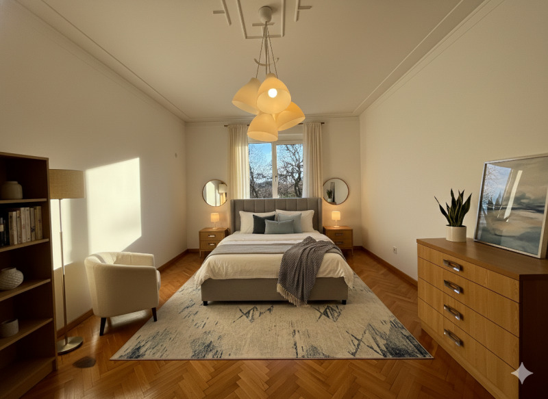 Мастър спалня с вдъхновяващ изглед към парка;