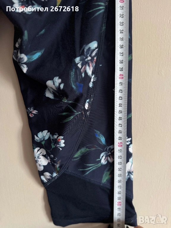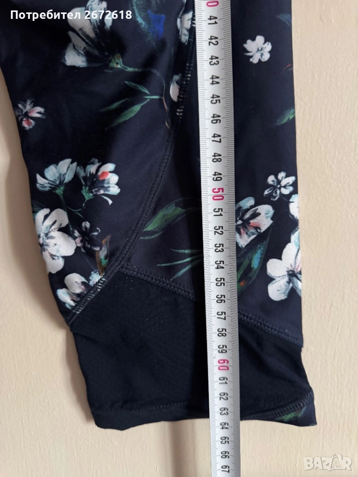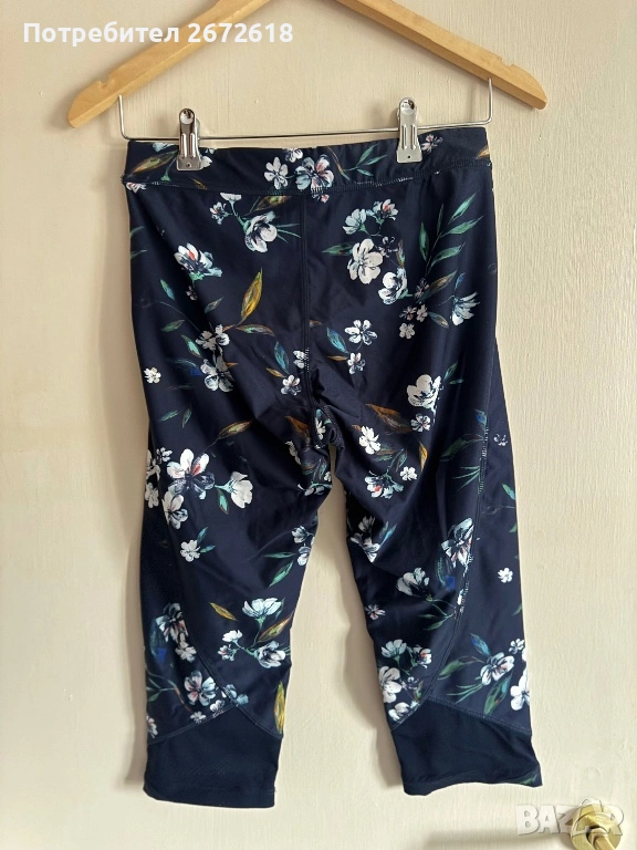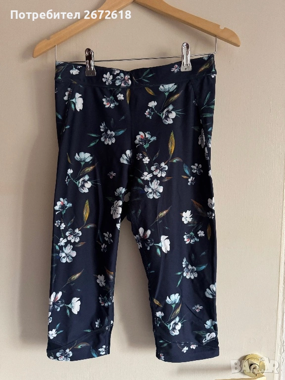 Спортен комплект на Etam. Размера е М, на долнището пише С, но си става за М и полепва по извивките, еластичен е клинът. Също така е 3/4 под коляното. Запазен е, няма скъсано никъде. За повече информация пишете.