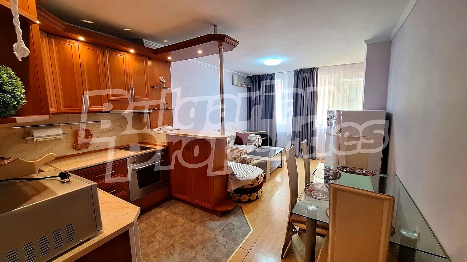 Жилището се отдава напълно обзаведено и оборудвано с всички необходими електроуреди и мебели за комфортно дългосрочно наемане. В спалнята е монтиран нов климатик, а отоплението е решено с климатици. Апартаментът е в отлично състояние и е свободен за нанасяне.