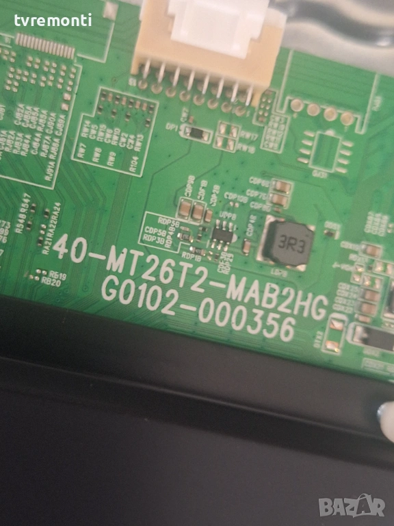 MAIN 40-MT26T2-MAB2HG G0102-00356 за 43-инчов телевизор TCL Модел 43T6C, с дисплей LVU430NDAL Платката е използвана, но гарантирано работеща, демонтирана от телевизор със счупен дисплей. Тествана е от нашия техник.