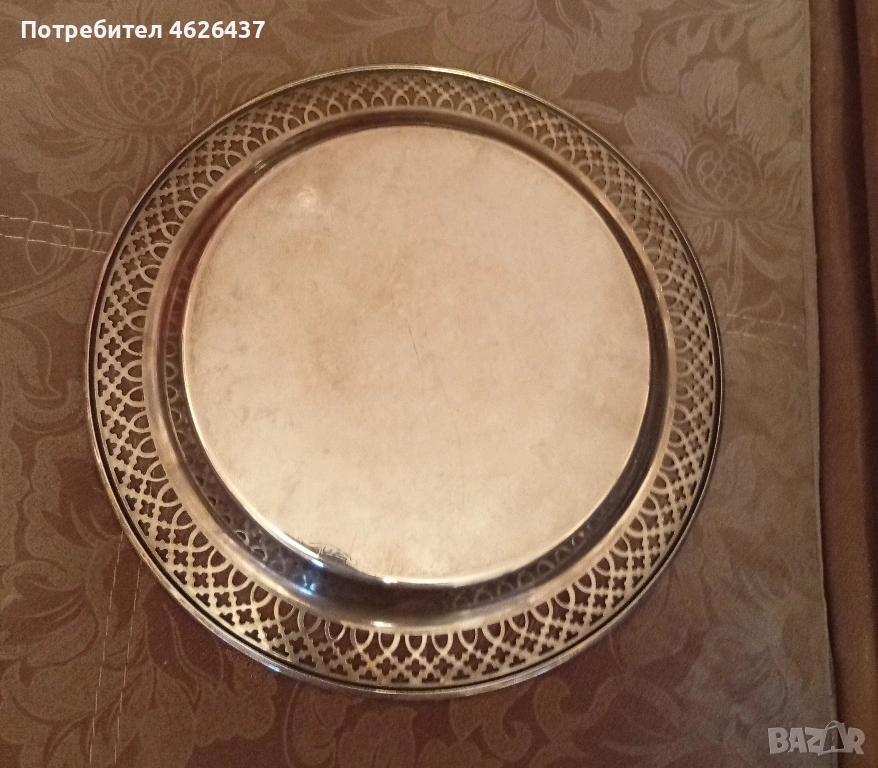 старинна, посребрена табла с ажурен ръб, диаметър 33 см