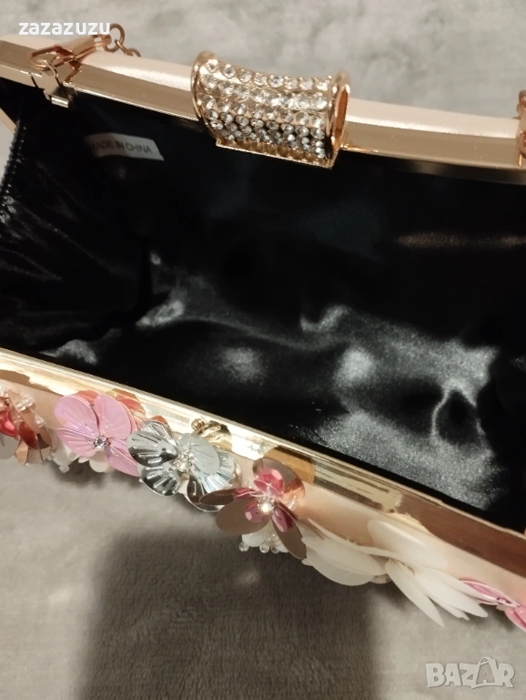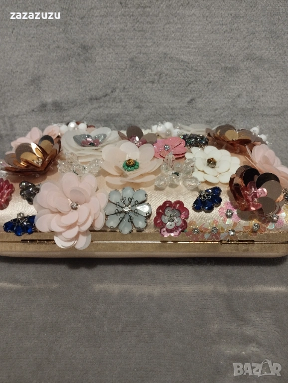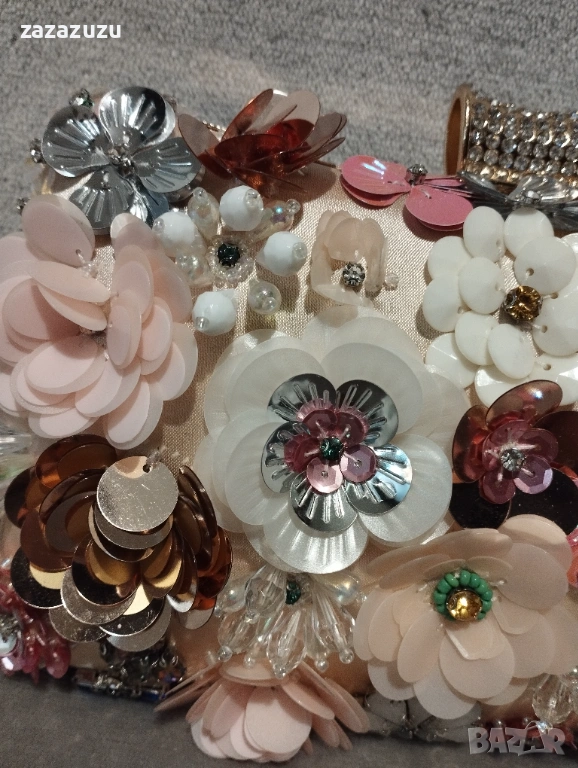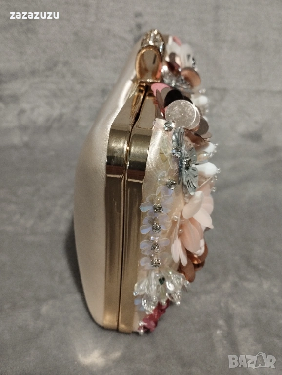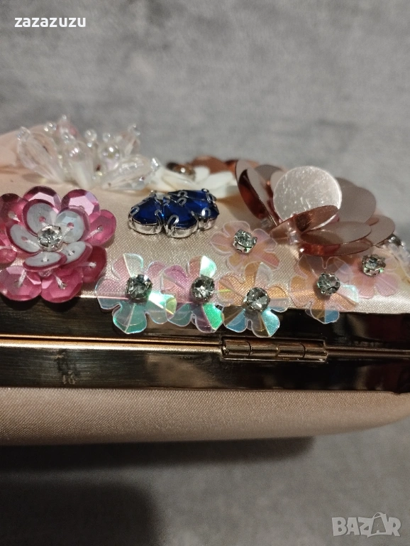 ЕЛЕГАНТНА ДАМСКА ЧАНТИЧКА - сатен и декоративни цветя → Обява 53087372