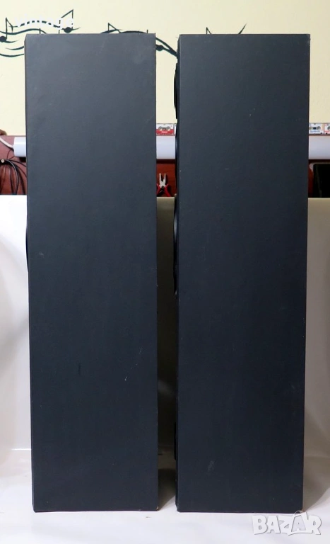 Трилентови озвучителни тела, тип на конструкцията отворен обем с предно разположен фазоинвертор/басрефлекс. Отлични технически, добър външен вид, известни козметични забележки. Приложените снимки и видео са реални!