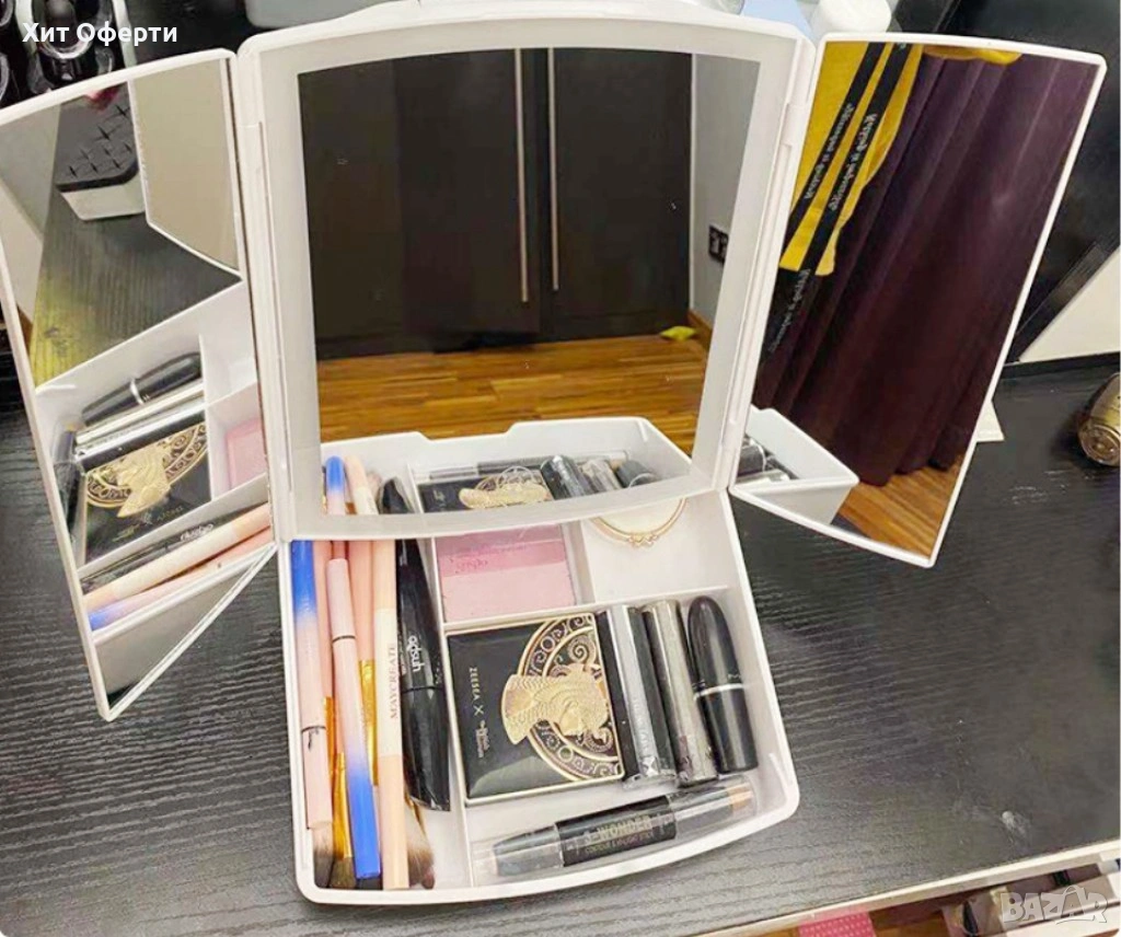 Мини LED огледало с органайзер за гримове , снимка 1 - Други - 53087628 Мини LED огледало с органайзер за гримове , снимка 2 - Други - 53087628 Мини LED огледало с органайзер за гримове , снимка 3 - Други - 53087628 1/3