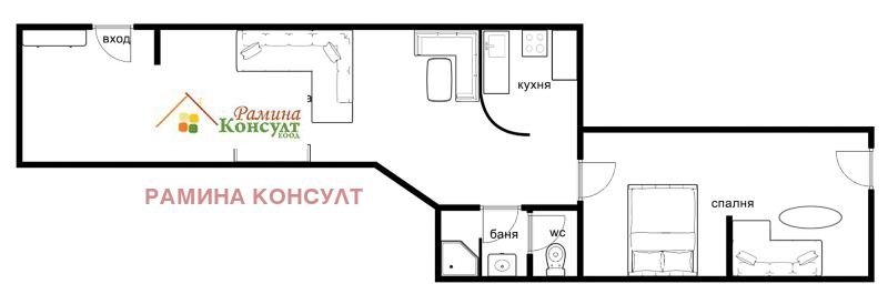 Обособена кухня с трапезария (кухненски бокс и мека мебел).