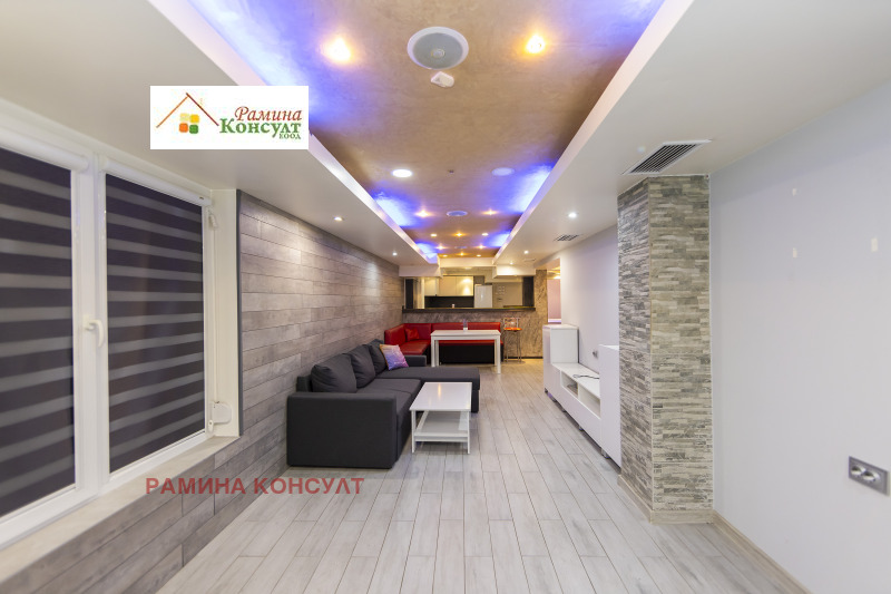 Интериор: Модерно осветление с вградени LED елементи в тавана (цветови акценти), висок клас подови настилки, стени с декоративен камък и латекс. Прозорците са оборудвани с качествени щори тип ден и нощ .