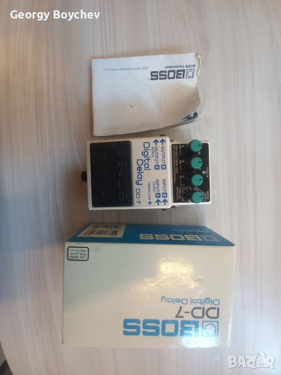 BOSS DD-7 Digital Delay: 92 евро. В много добро състояние, първи собственик. Минимални следи от употреба. Идва с оригинална кутия и техническо ръководство. Има залепени парчета велкро на гърба.