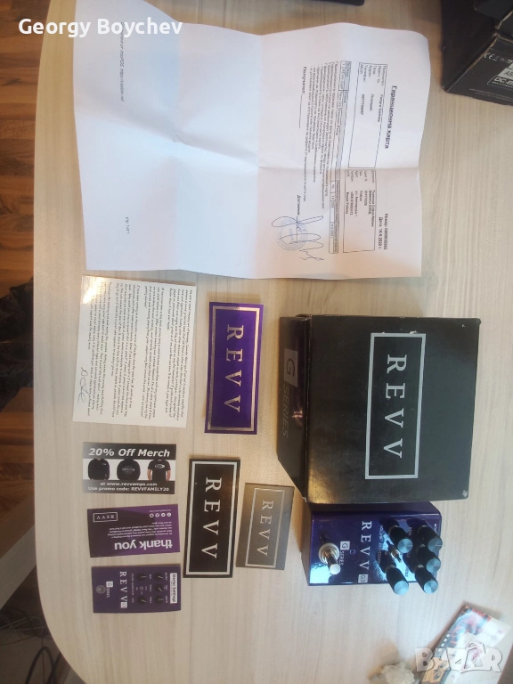 REVV G3: 155 eвро. Първи собственик. Неразличим от нов, пуснах го няколко пъти за проба. Идва с оригинална кутия, рекламни материали и брошури. Има залепени парчета велкро на гърба.