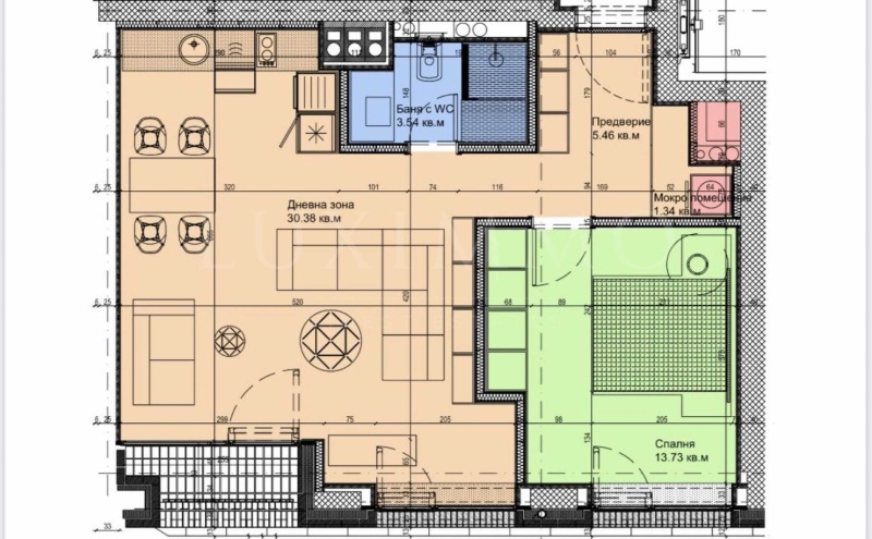 Жилището се предлага в завършен вид, с поставени подови настилки, завършена баня и извършени довършителни дейности, както и цялостно обзавеждане.