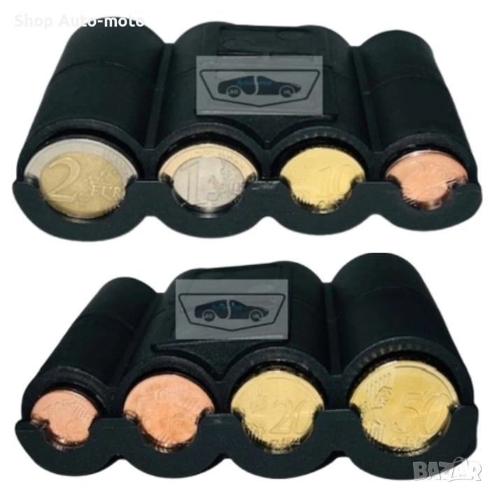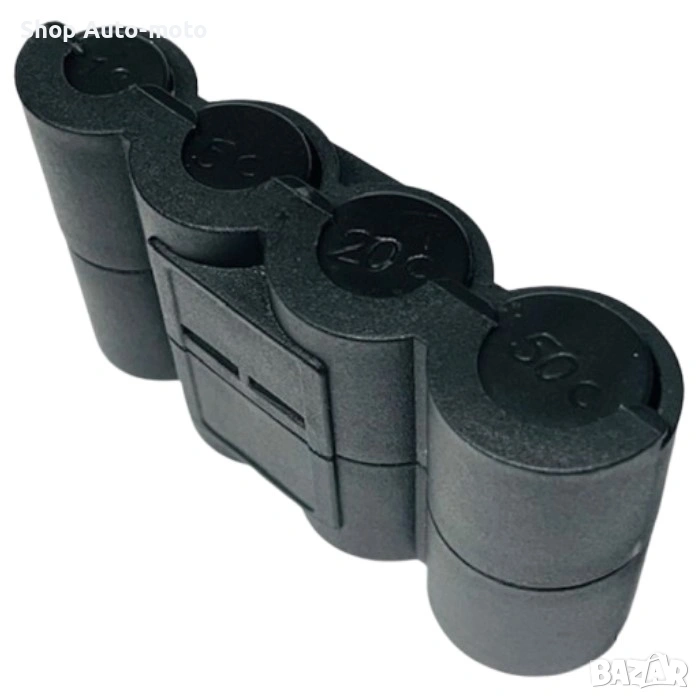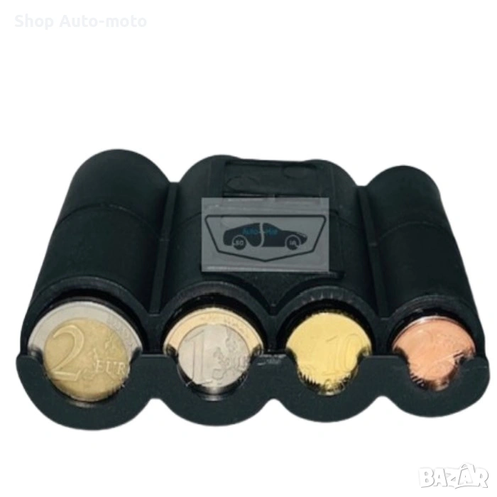 Прецизно оформени отделения за монети от различни номинали, монетите стоят подредени и защитени от разпиляване, което улеснява намирането им в движение. Компактният размер позволява монтиране на различни места в автомобила — жабката, поставката за чаши, вратата или конзолата. Това го прави практичен избор както за професионални шофьори, така и за всички, които искат по-организирано и удобно шофиране.