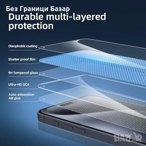 Ново Закалено стъкло 0.33мм HD за iPhone 15 Plus 6.7" – комплект 3 броя протектор Айфон Защита