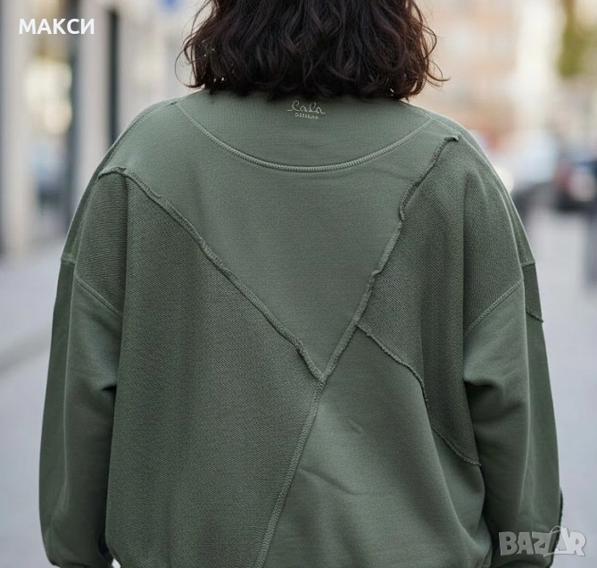 Памучна макси маркова модерна къса еластична блуза с бродиран надпис в камуфлажно зелено/аутлет/, снимка 1 - Блузи с дълъг ръкав и пуловери - 53088395 Памучна макси маркова модерна къса еластична блуза с бродиран надпис в камуфлажно зелено/аутлет/, снимка 2 - Блузи с дълъг ръкав и пуловери - 53088395 1/2