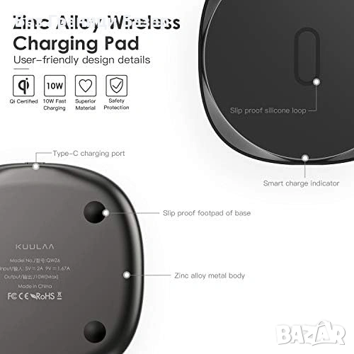Нова зарядна подложка Kuulaa Qi зарядно 10W бързо за телефон Samsung Galaxy и iPhone