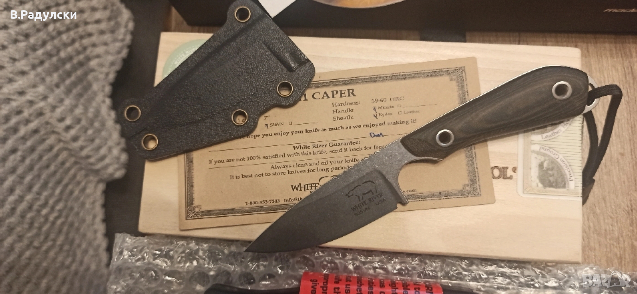 4. White River M1 s35vn. Купуван от stay alive. Стомана s35vn, дръжка микарта. По-скъпата версия. Кутия, сертификат. Липсва клипса, не мога да го намеря. И без това не ставаше за нищо...