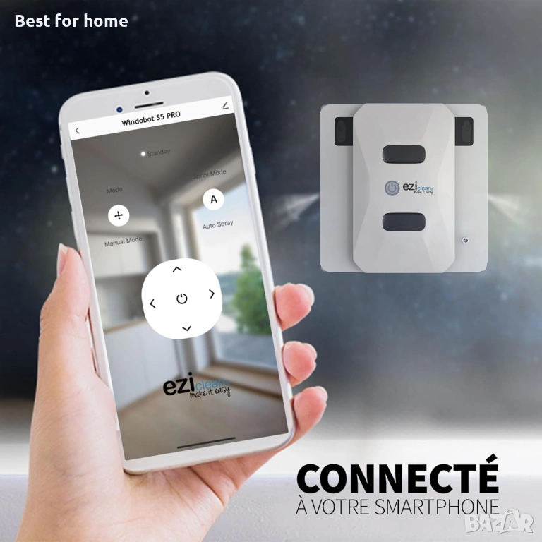 EZIclean® Windobot S5 Pro е интелигентен робот от последно поколение, проектиран да поддържа вашите стъкла, огледала и плочки блестящи без никакво усилие от ваша страна. Благодарение на своята иновативна навигация и мощна всмукателна сила, той се движи сигурно по вертикални повърхности, осигурявайки професионално почистване дори на труднодостъпни места.