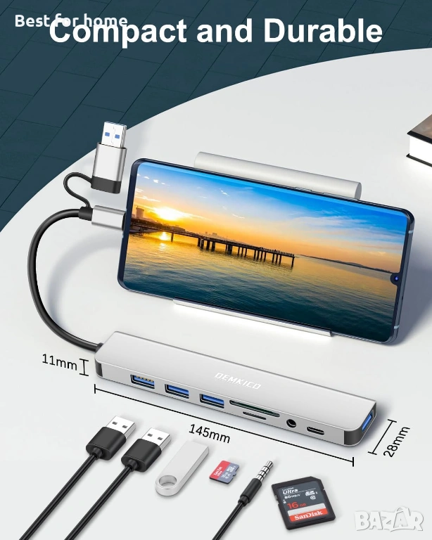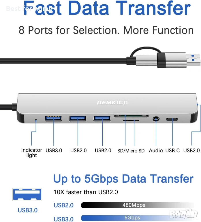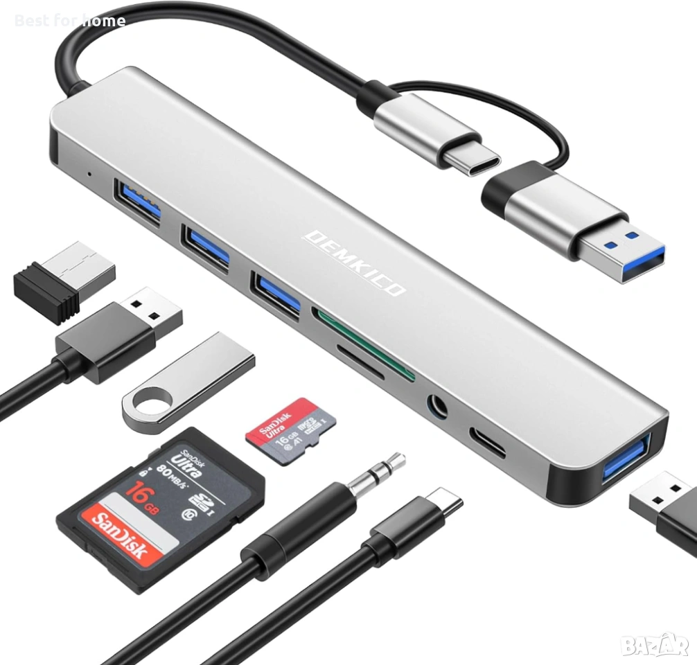 Това е мултифункционален USB адаптер, който разширява възможностите на вашия компютър или лаптоп с един единствен ход. Моделът на DEMKICO е идеалното решение за потребители, които имат нужда от допълнителни портове за периферия, бърз трансфер на данни от карти памет и директен аудио изход. Изключително полезен за съвременни устройства с ограничен брой входове.