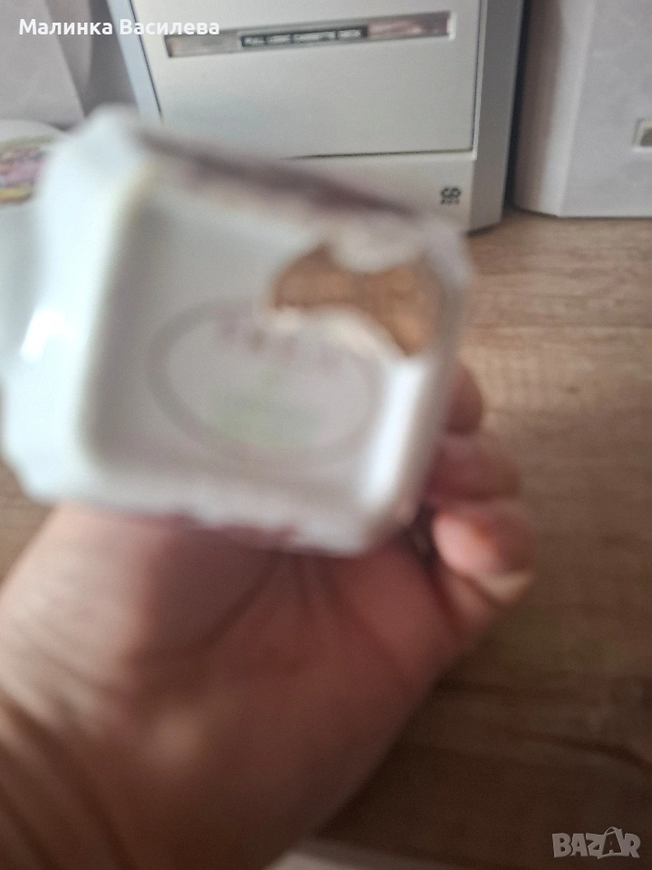 Има забележка от вътрешната страна, която не се вижда при затворено капаче и не влияе на визията.