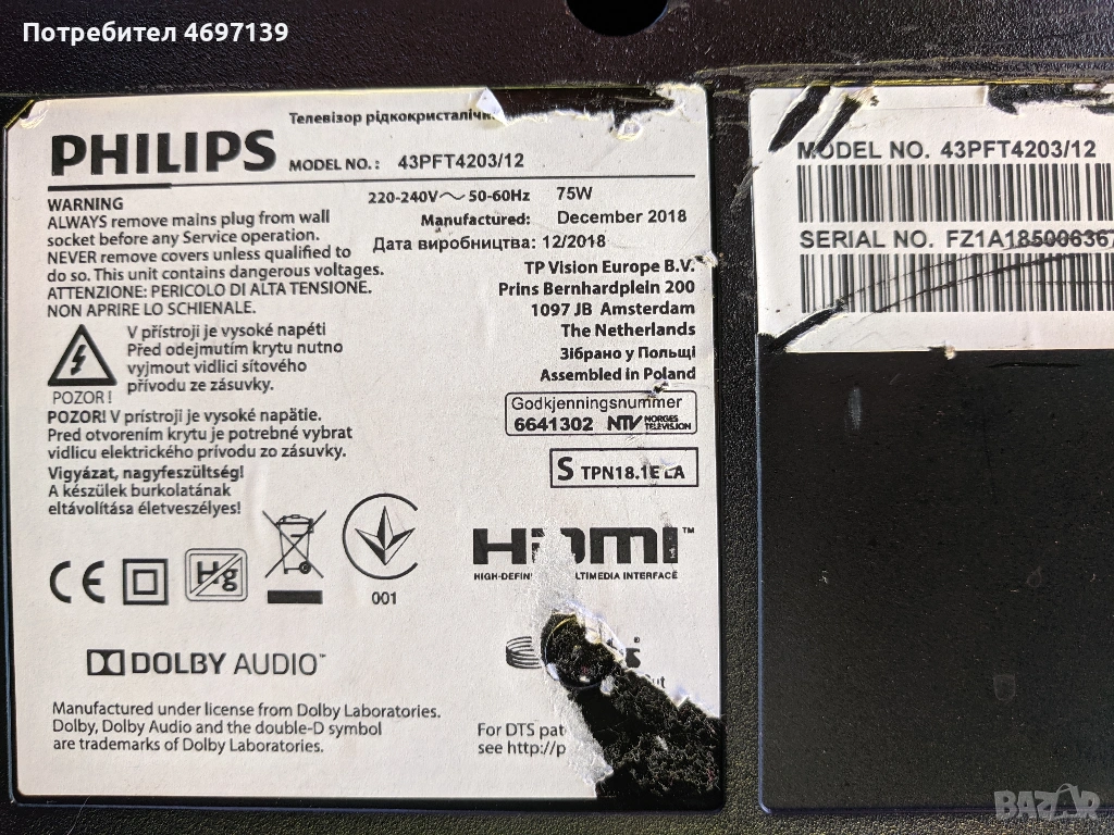 PHILIPS 43PFT4203/12-715G9287-C01-001-004Y → Обява 53089555