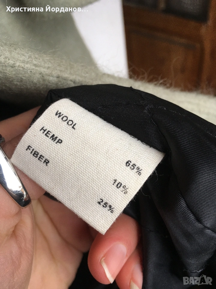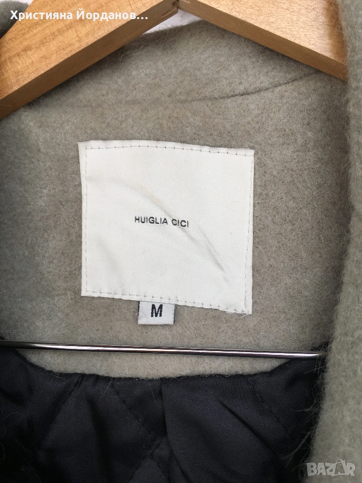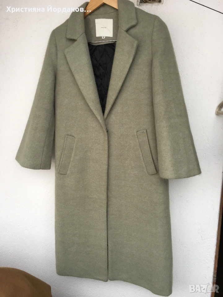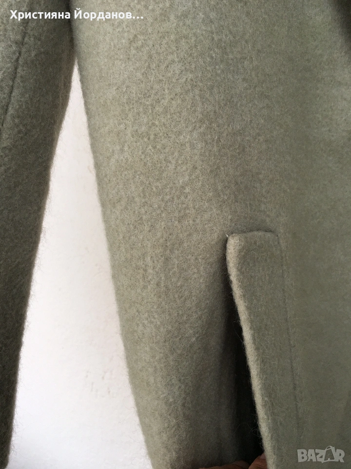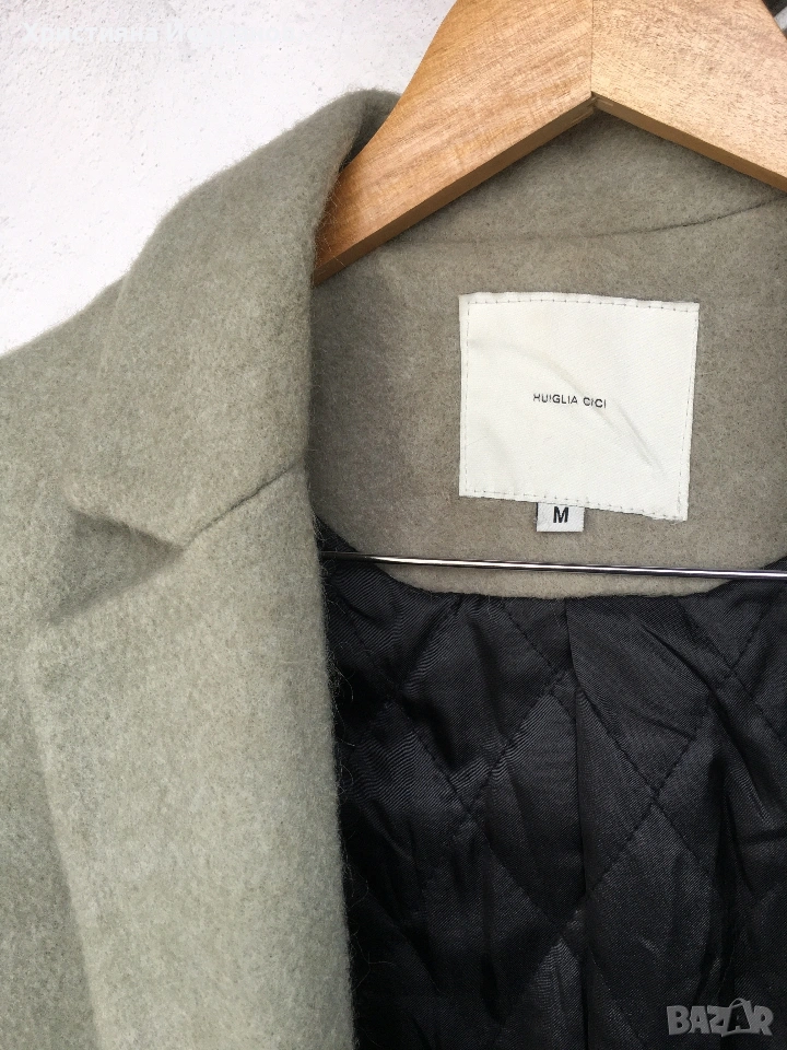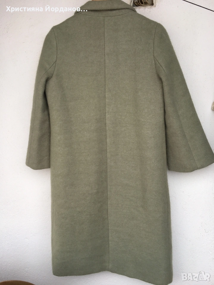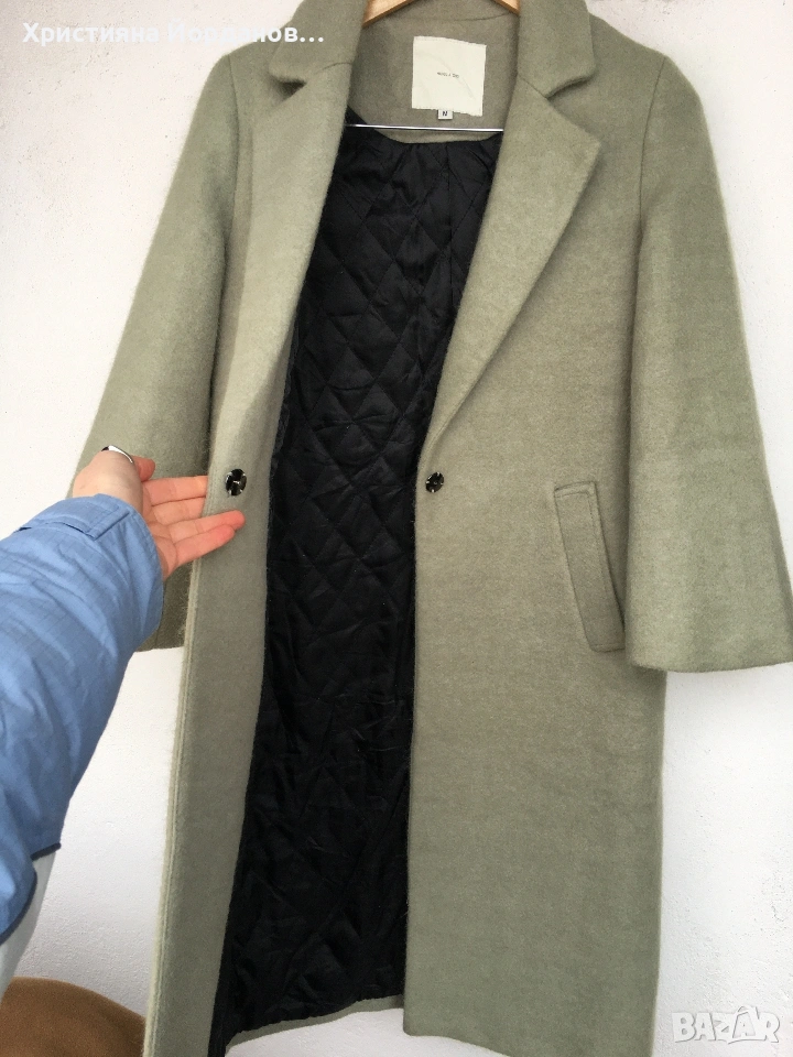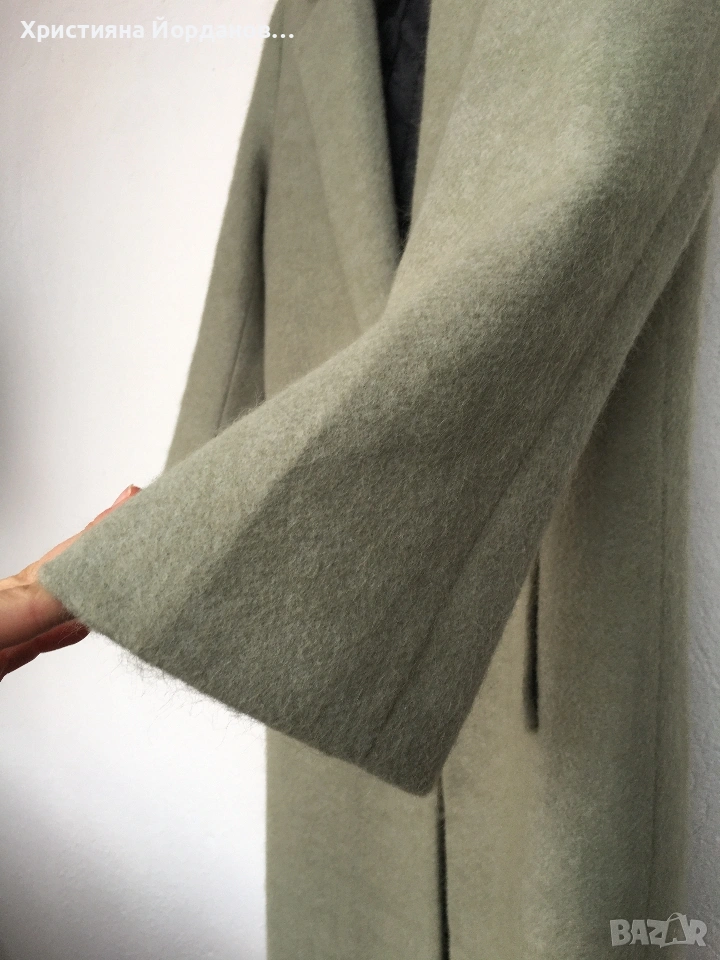 Вълнено палто цвят светла мента със сиви отенъци, М → Обява 53089654