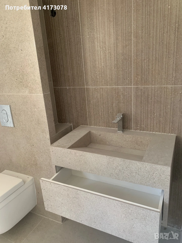 Предоставяме на вашето внимание професионално изработени умивалници от гранитогрес с интегрирано чекмедже стандартен размер 80х45х40 в бяло или черно също така и по индивидуална поръчка.