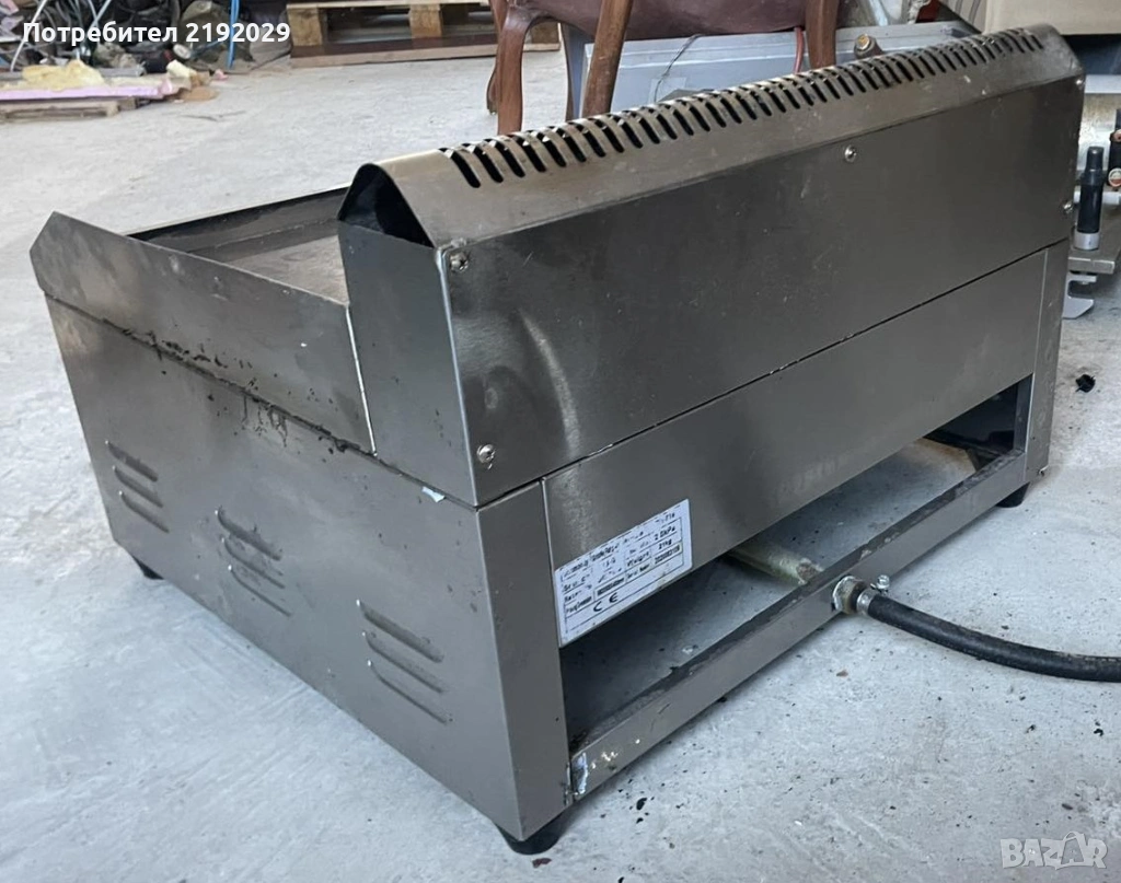 Професионална газова скара/плоча от изцяло гладка - на една секция, пиезозапалка, съд за събиране на мазнини.