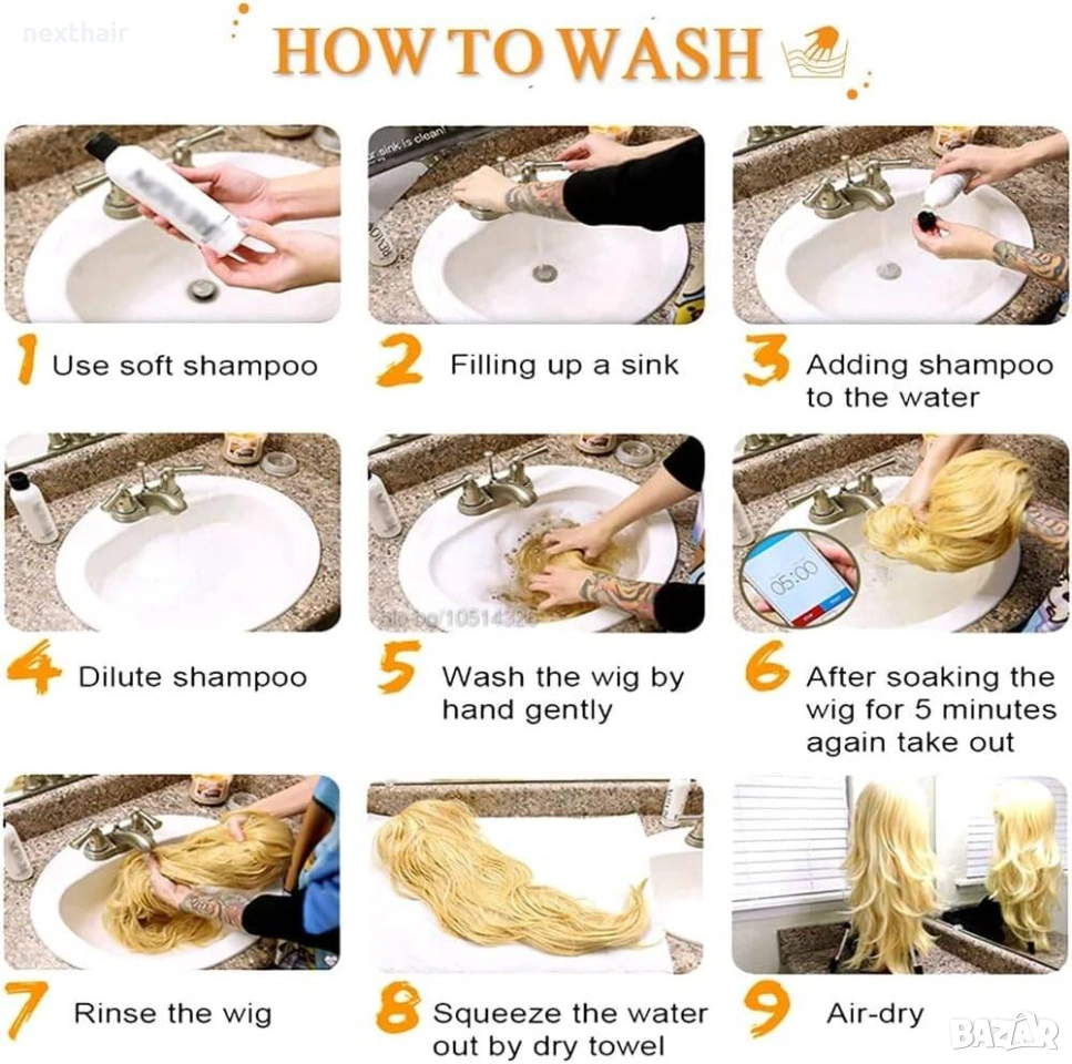 Ефектна перука от синтетичен косъм, може да издържи на температура от 150-170 градуса.