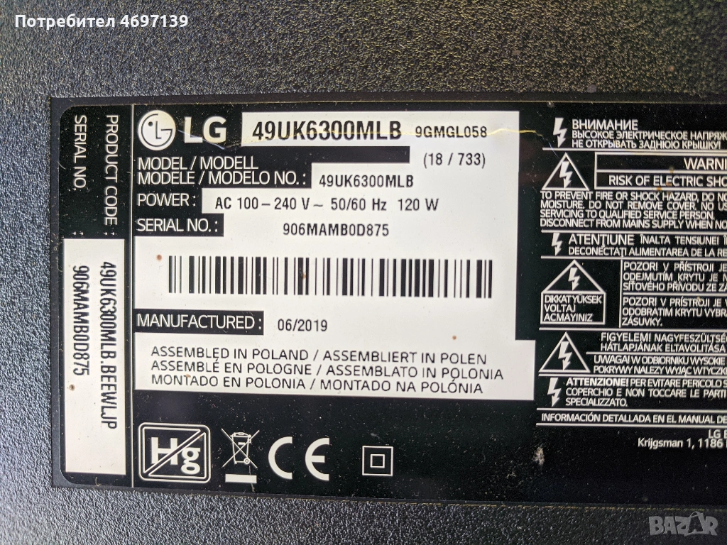 LG 49UK6300MLB-EAX67872805/1.1/-LGP49DJ-17U1- EAX67189201/1.6/, снимка 1 - Части и Платки - 53090223 LG 49UK6300MLB-EAX67872805/1.1/-LGP49DJ-17U1- EAX67189201/1.6/, снимка 2 - Части и Платки - 53090223 LG 49UK6300MLB-EAX67872805/1.1/-LGP49DJ-17U1- EAX67189201/1.6/, снимка 3 - Части и Платки - 53090223 LG 49UK6300MLB-EAX67872805/1.1/-LGP49DJ-17U1- EAX67189201/1.6/, снимка 4 - Части и Платки - 53090223 LG 49UK6300MLB-EAX67872805/1.1/-LGP49DJ-17U1- EAX67189201/1.6/, снимка 5 - Части и Платки - 53090223 LG 49UK6300MLB-EAX67872805/1.1/-LGP49DJ-17U1- EAX67189201/1.6/, снимка 6 - Части и Платки - 53090223 LG 49UK6300MLB-EAX67872805/1.1/-LGP49DJ-17U1- EAX67189201/1.6/, снимка 7 - Части и Платки - 53090223 LG 49UK6300MLB-EAX67872805/1.1/-LGP49DJ-17U1- EAX67189201/1.6/, снимка 8 - Части и Платки - 53090223 LG 49UK6300MLB-EAX67872805/1.1/-LGP49DJ-17U1- EAX67189201/1.6/, снимка 9 - Части и Платки - 53090223 1/9